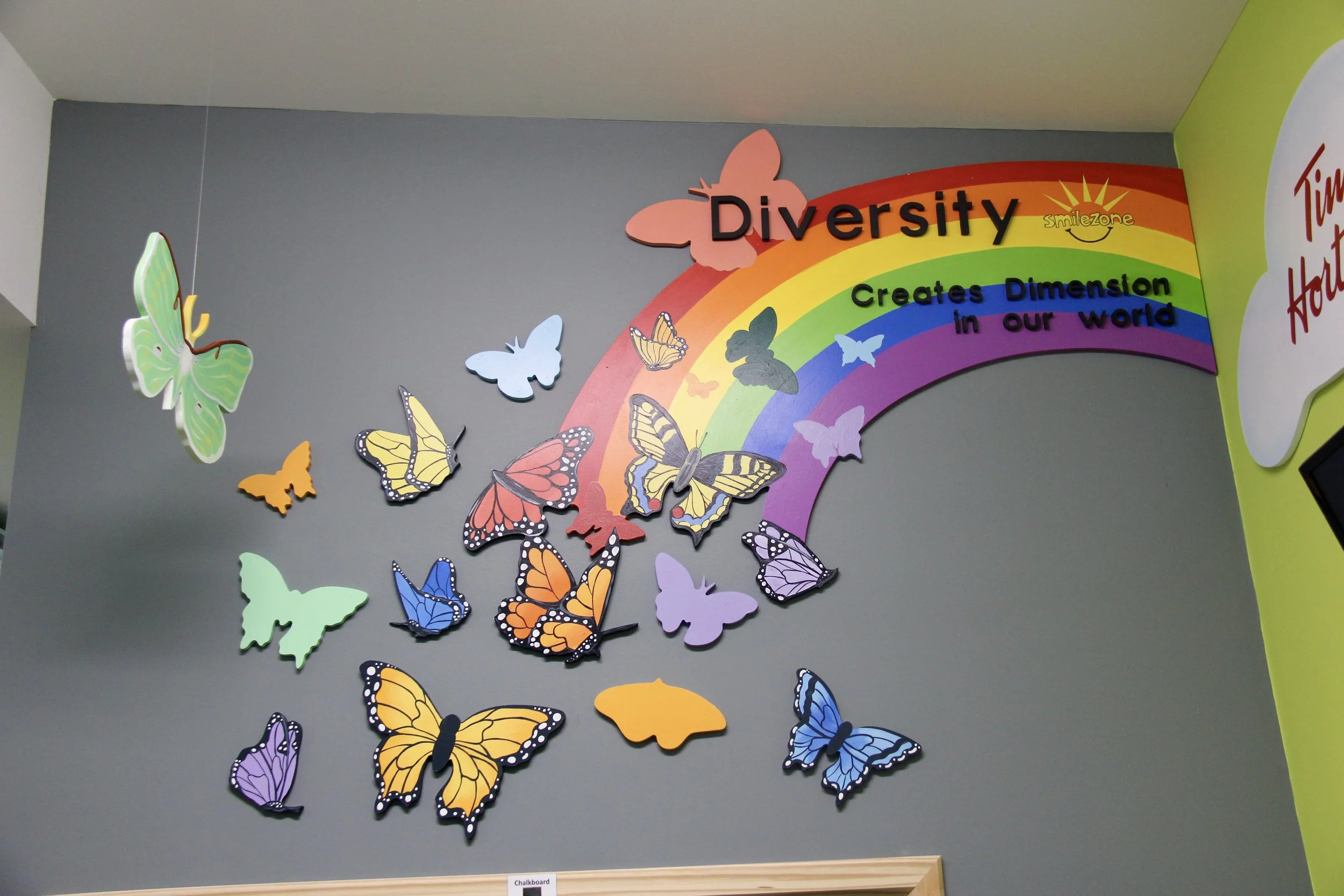 Dimensional mural for Lutherwood, Cambridge for a Smilezone Foundation project. Millwork by MBI.