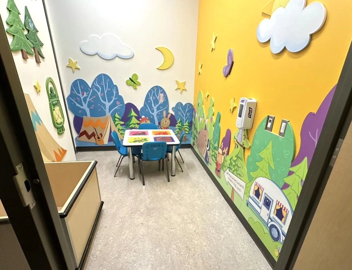 Kid’s camping themed nook, Waypoint Mental Health Care, Penetanguishene. Designed and painted for a Smilezone transformation. Millwork by MBI.